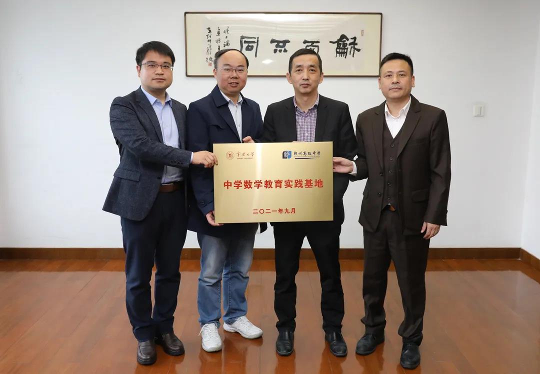 为进一步落实立德树人根本任务,加强学院实践教学工作,提升人才培养质量,同时进一步发挥高校地方服务功能,促进与宁波基础教育之间的共赢合作,11月5日,学院副院长胡良根、院长助理徐松赴鄞州高级中学,就共建中学数学教育实践基地等事宜进行了沟通和协商,并举行了授牌仪式。鄞州高级中学校长汪纪苗、副校长叶琪飞参加了仪式。