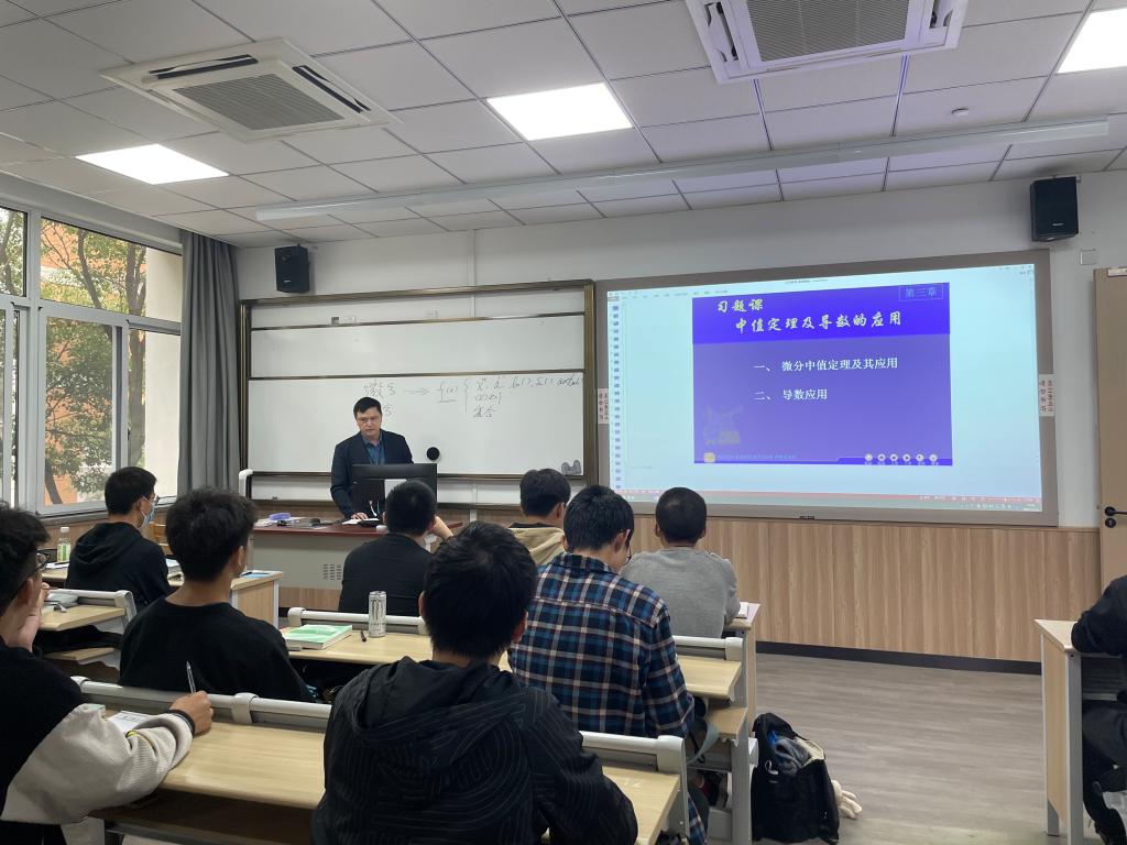 课程思政建设,提高教师课程思政建设与学科育人能力,切实将“课程思政”融入课堂教学,11月3日下午,大学数学部袁明贤老师在北区3号教学楼103教室开展了一堂《高等数学A1》的院级课程思政公开观摩课,学院20余名教师参加观摩学习。