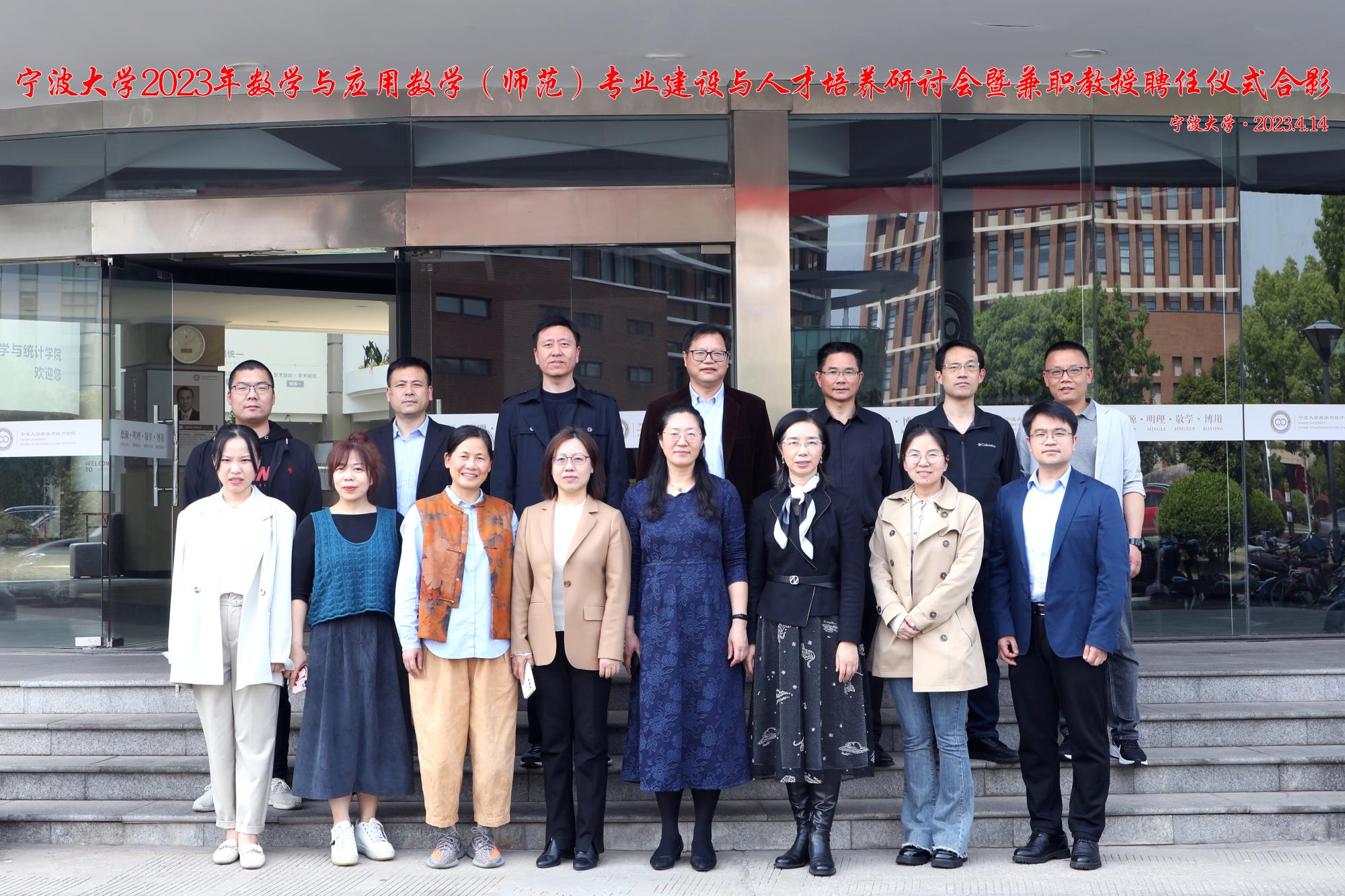 为加强师范教育与中学教学的衔接,推动数学与应用数学(师范)专业持续改进,4月14日下午,学院召开数学与应用数学(师范)专业建设与人才培养研讨会暨兼职教授聘任仪式。会议由教学副院长徐松主持,来自宁波市教育局教研室和宁波市多所重点中学的9位正高级专家、院党委书记霍妍、大学数学部主任解烈军、数学系主任徐晨东、副系主任包宏伟、曹陈辰及教务办申严、贺维婷参加会议。