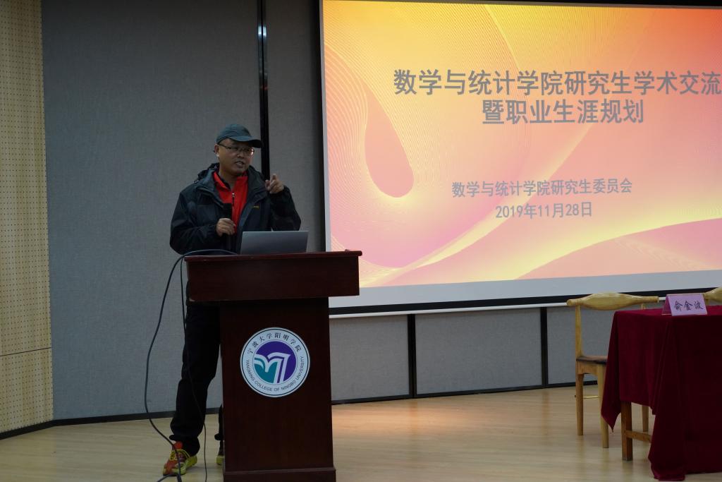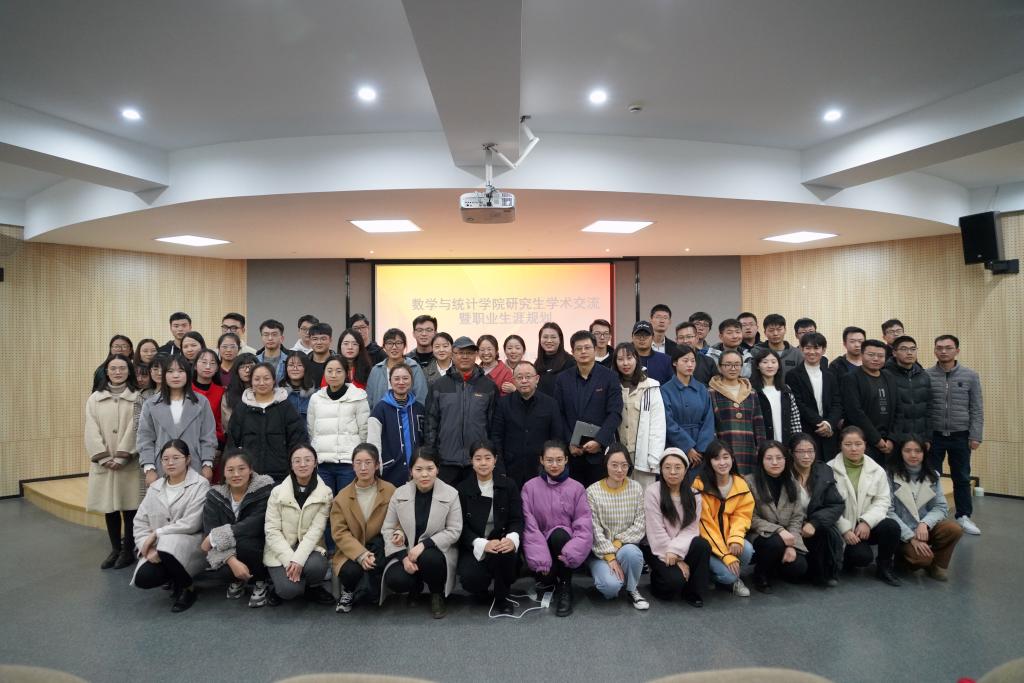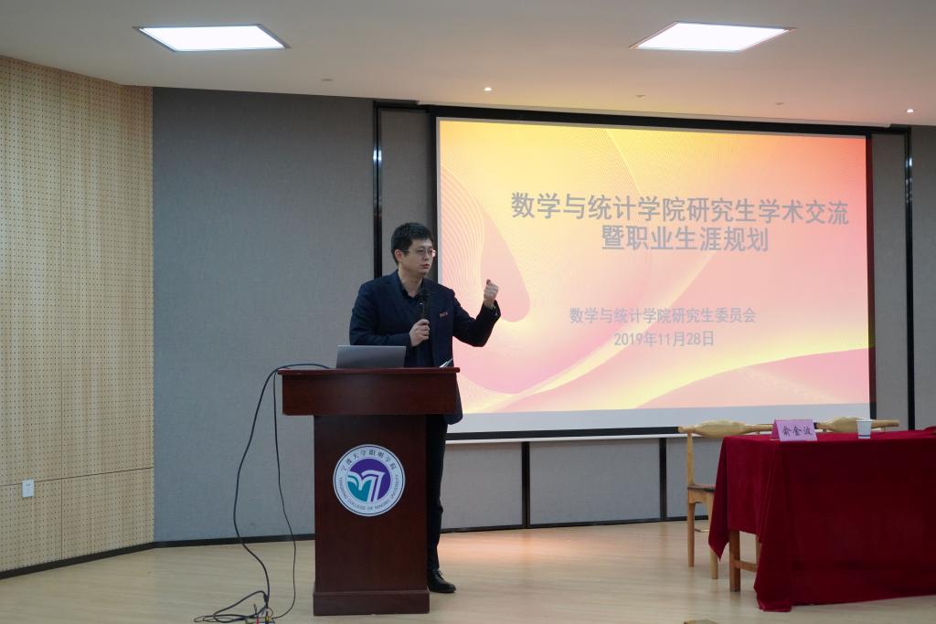首先,曹炜致欢迎辞,他希望在座的研究生们珍惜此次交流机会,跟着前辈们虚心求教,汲取数学专业学生职业生涯规划和发展的精髓,全面了解和认识数学的行业现状和职业发展之路。随后,屈院长从学术规划方面分享他多年来的经验。屈院长告诉同学们要打好数学基础,提高自身的专业能力和自我管理能力,给自己定下目标,包括近期目标和长远目标;要多去反省自己,不断努力,不断进步,不断提高自己各方面的能力。他强调,要学会时间管理,把握住时间,不要把时间浪费在无意义的事情上;要明确自己的方向,然后朝着自己的方向努力奋斗;要积极参与体育锻炼,提高身体素质。紧接着,俞书记就职业规划方面分享他的宝贵经验。俞书记告诉同学们要树立正确的人生观、价值观,学会做人做事做学问,全面的发展自己,提高各方面的能力;要从自身的情况出发找到适合自己的方向,然后不断朝自己确定的方向奋进;要学会用更广的眼光去看世界,不要做井底之蛙,多出去看看;要多和长者、智者交流,多向他们请教,不要盲目做决定,做事情前要考虑到后果;要学会化压力为动力,要对自己有信心,要勤奋努力!