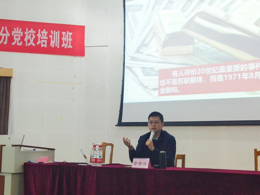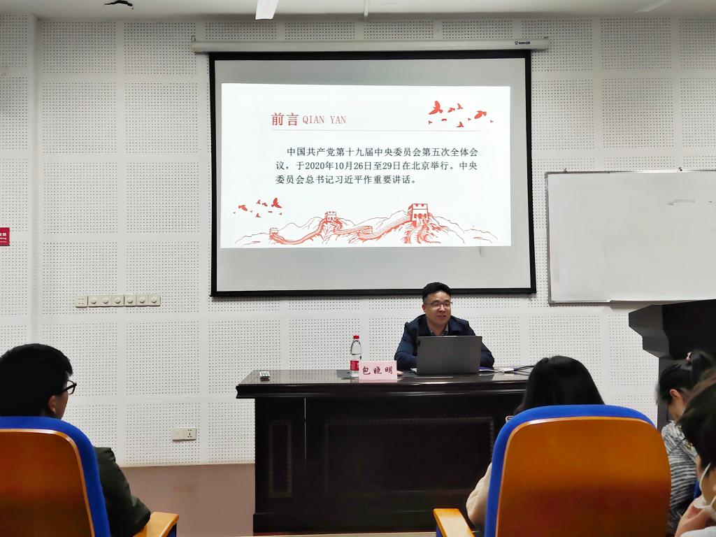 院党委书记俞金波首先作了第一讲《从习近平一带一路看战略思维的重要性》,俞书记从学习十九大、十九届五中全会精神切入,为学员们分析了“一带一路”的战略思维,然后指出战略思维的基本要求,让学员们对党的十九大、十九届五中全会精神及战略思维有了更为深刻的理解,进一步提高了党性修养。在随后几天的党课培训中,院长助理包晓明,学工办主任冯程,团委副书记陈佳雯,马克思主义学院方舟以及团委书记张宾分别进行专题讲座。包晓明的专题讲座《伟大旗帜引领历史巨变——聚焦十九届五中全会》让学员们对十九届五中全会精神有了深刻的认识;冯程的讲座《从近代百年巨变看新时代大国崛起——谈一谈我为什么加入中国共产党》从百年近代史分析了入党的必要性,增强了学员们的民族自信心和自豪感;陈佳雯的讲座《青年党员的责任与担当》以本次疫情中党员身先士卒的例子,向学员们展示了当代青年党员的责任与担当;方舟对马克思“唯物主义”概念进行反思,让学员们对马克思主义有了更深刻的理解;最后,张宾从入党动机,入党流程以及党章学习三方面展开,为学员们开展了《学习党章 锤炼党性》的专题讲座。
