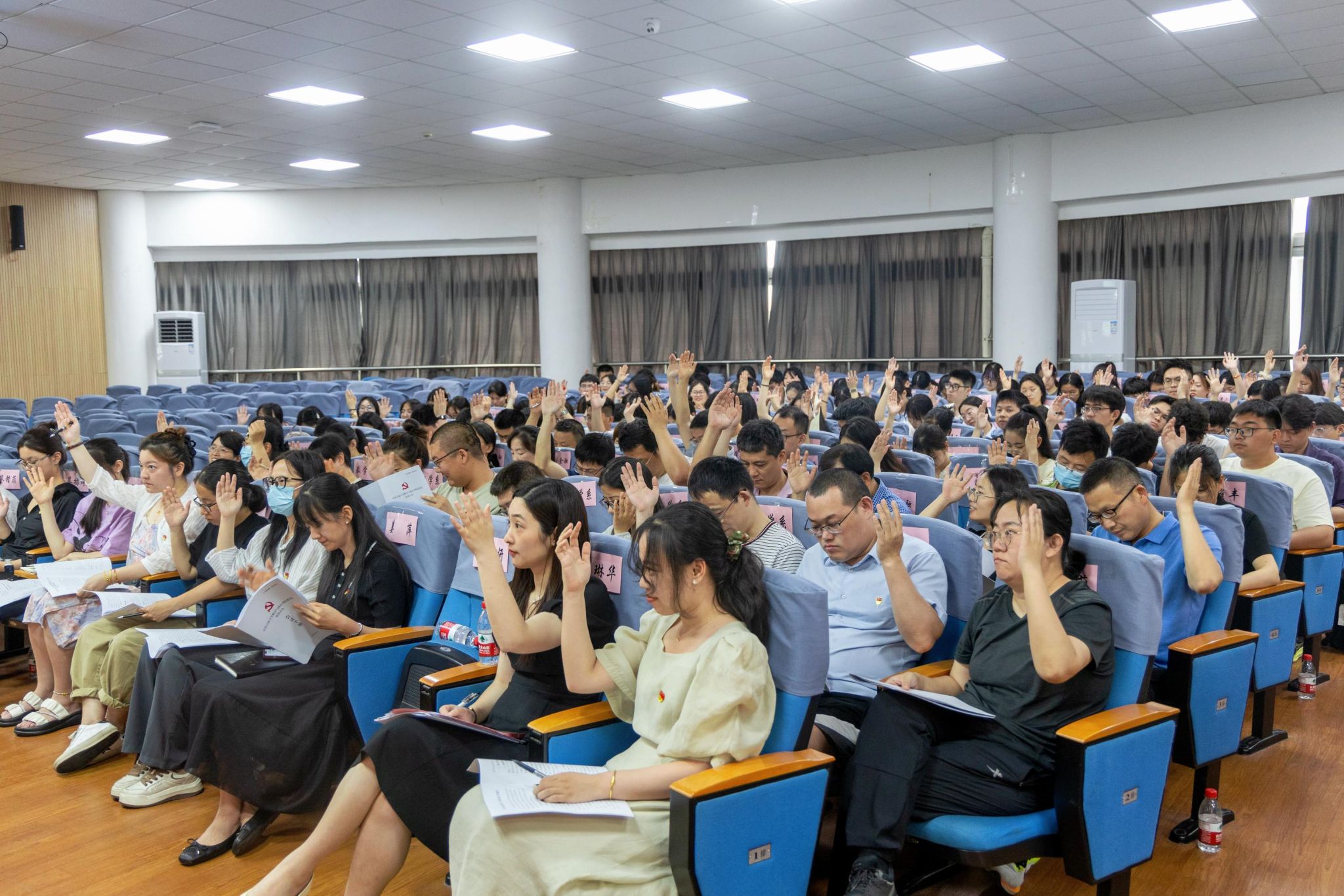 6月19日中午,中共黑料718 委员会第四次党员大会在包玉书9号楼317报告厅隆重举行。会议由院党委书记霍妍同志主持,学院全体师生党员参加,校考察组陈玉涓同志列席。