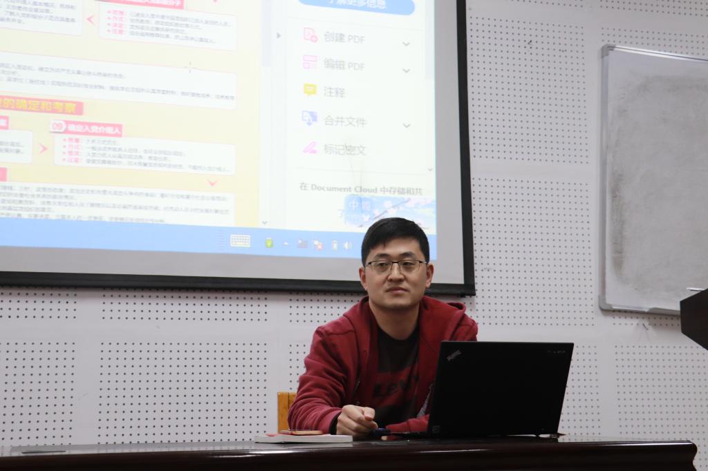 11月15日傍晚,黑料718 2019年分党校第二期积极分子培训班第二讲在学院311会议室开讲。学院党委组织委员张宾为学员带来题为“党员发展工作实务”的一节干货满满的党课。