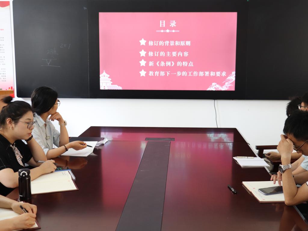 6月10日下午,学院党委组织党务干部和党建骨干集体学习《中国共产党普通高等学校基层组织工作条例》(以下简称《条例》),数学学院各党支部支委、党建骨干以及学院党建研究分会全体成员参会,会议由党委委员、组织员张宾主持。