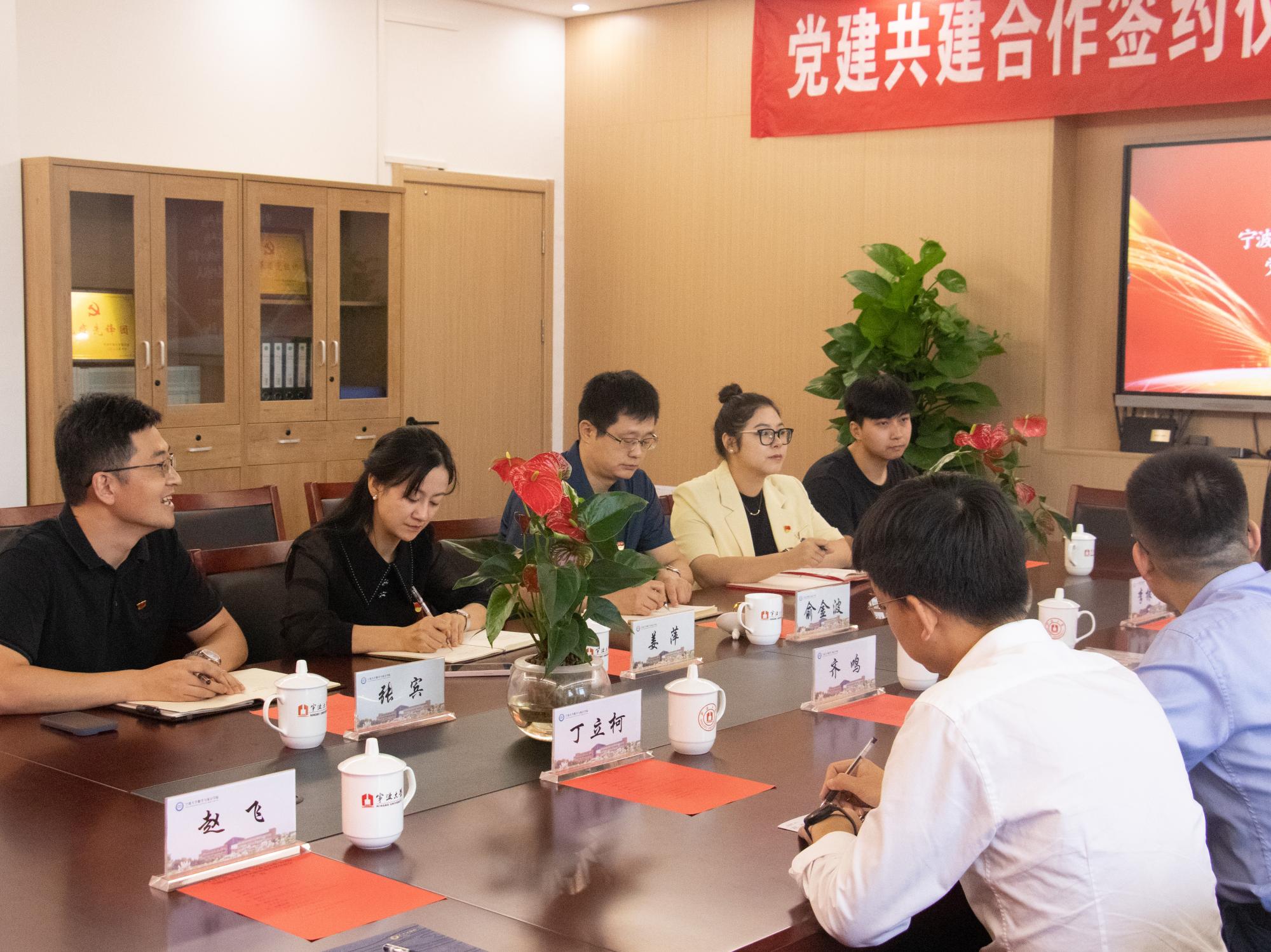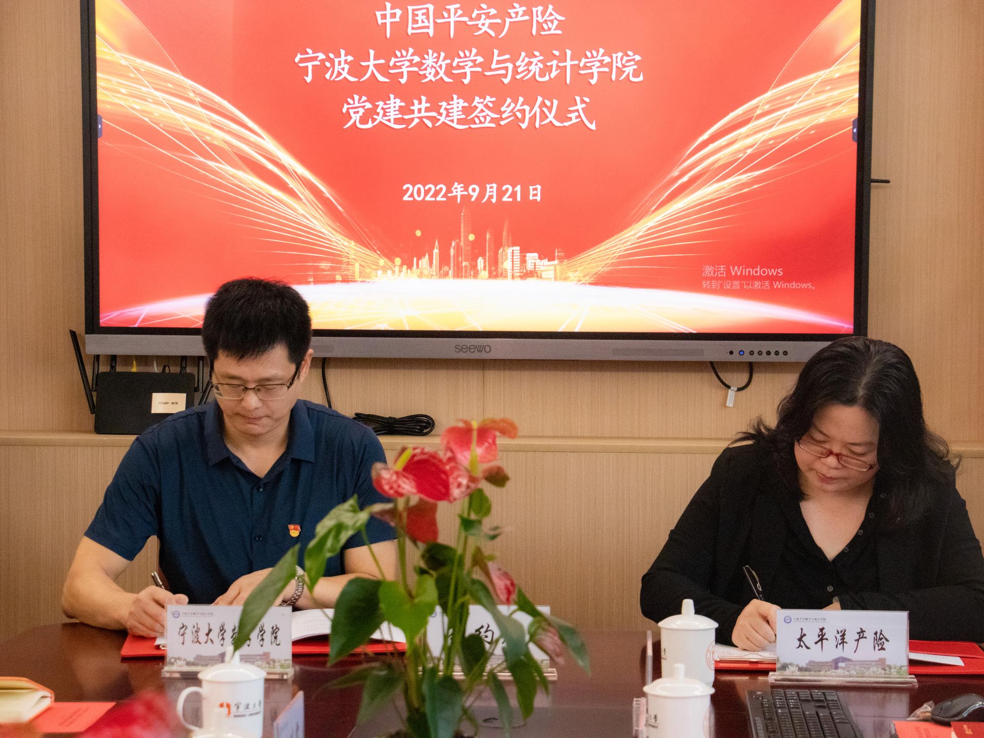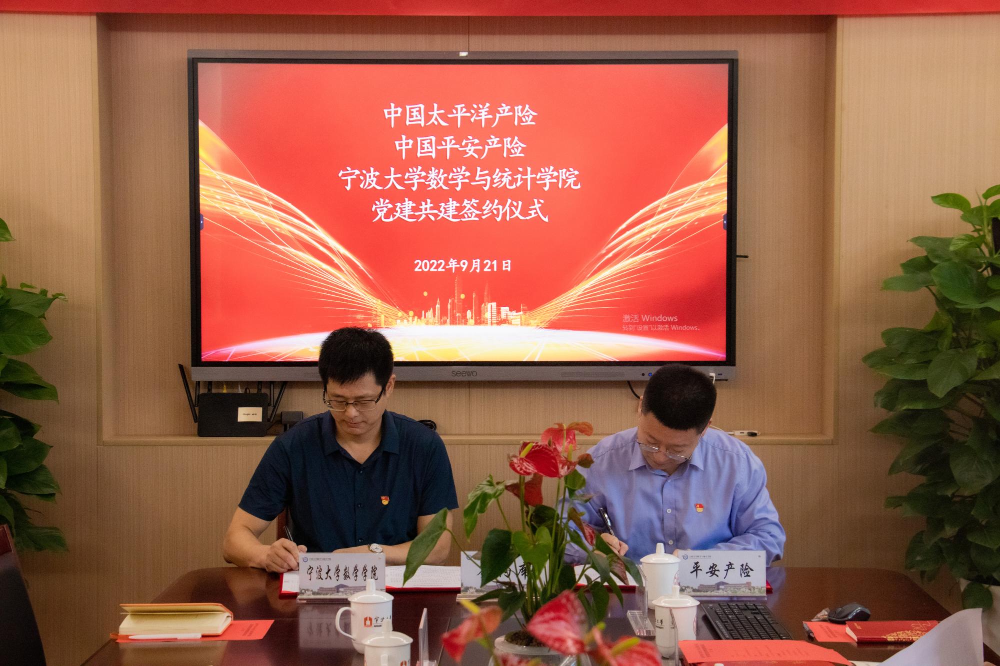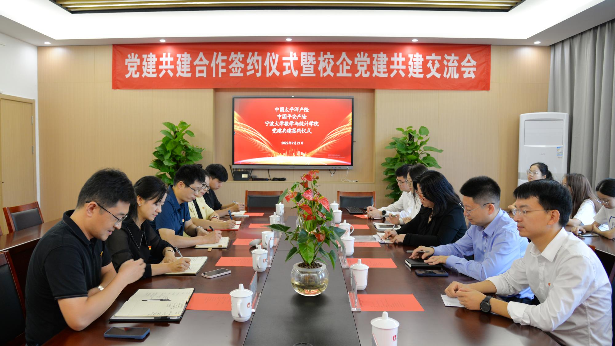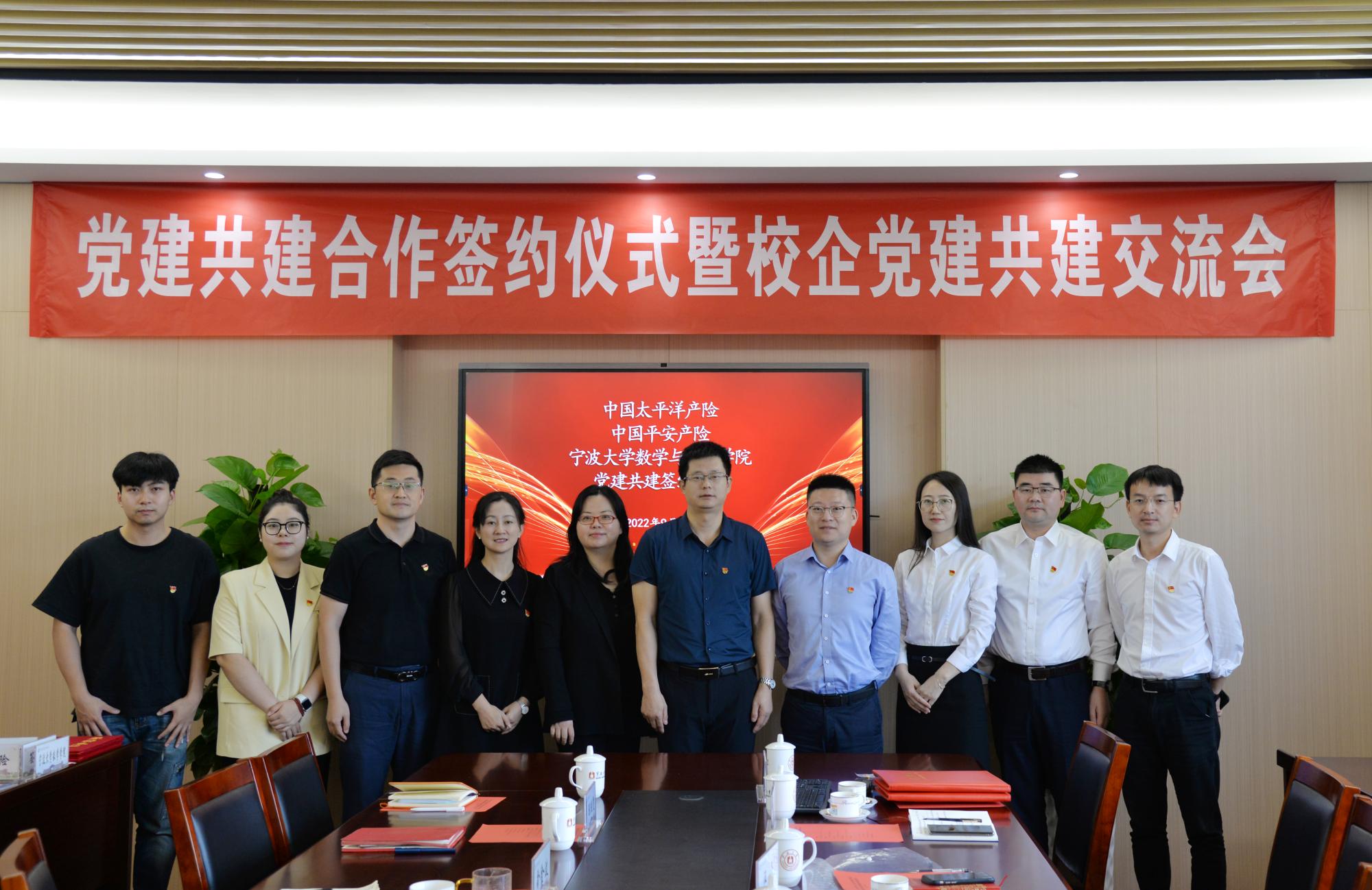 为全面贯彻习近平新时代中国特色社会主义思想,深入落实新时代党的建设总要求,激发高校基层党组织活力,有效整合校企党建资源优势,促使双方在合作中优势互补、共同发展、实现双赢,9月21日上午,我院和太平洋产险、平安产险党建共建签约仪式暨党建共建交流会在包玉书科学楼9号楼218会议室隆重举行。中国太平洋产险宁波分公司党建工作部负责人汪蕾,中国平安产险宁波分公司党委委员、党办主任齐鸣,黑料718