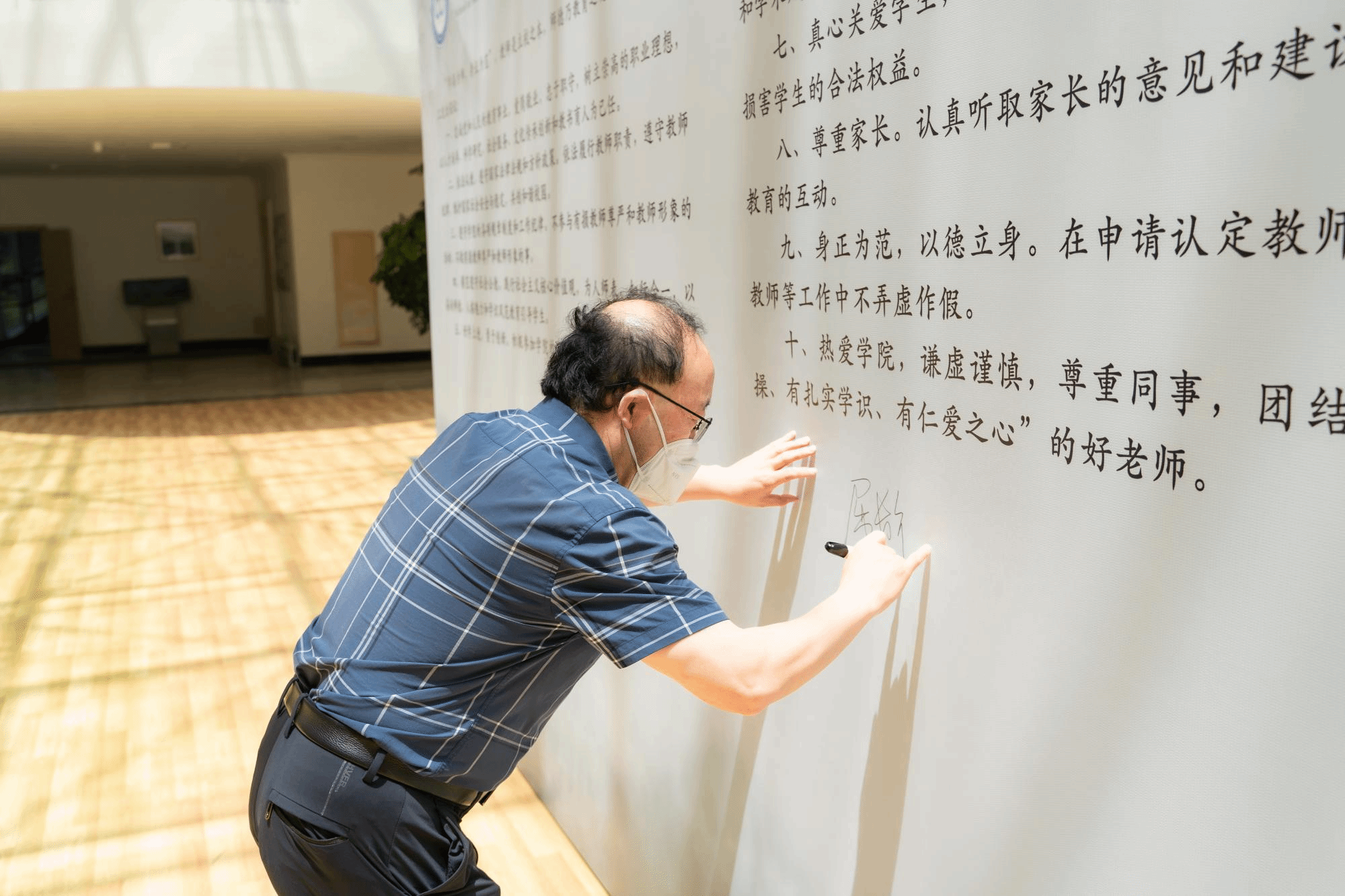 会上,全体参会人员观看了教育部最新公开曝光的第十二批7起违反教师职业行为十项准则典型案例警示教育片 并共同签署了师德师风承诺书,承诺自觉落实立德树人根本任务,做“四有”好老师,时刻做到自重、自省、自警、自励,始终坚守师德底线,营造风清气正的育人环境。