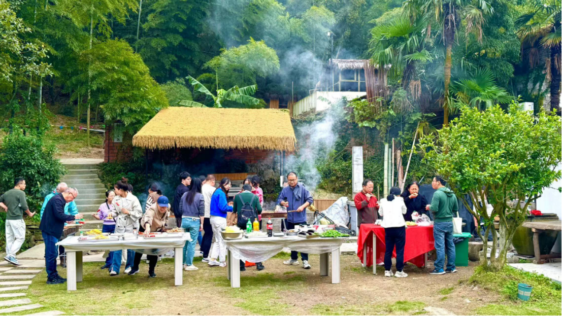 当天早上,老师们到达深溪村后开启深溪-龙鹫登山步道之路。山林青翠幽静,这条步道环线有着460多年历史。老师们感受着山林与清泉的清新风光,又追寻着历史的路标。人文与自然的结合,身心倍感享受。中午来到山下农家民宿,感受烧烤的自然风味。老师们大显身手,忙得不亦说乎,吃得也津津有味。