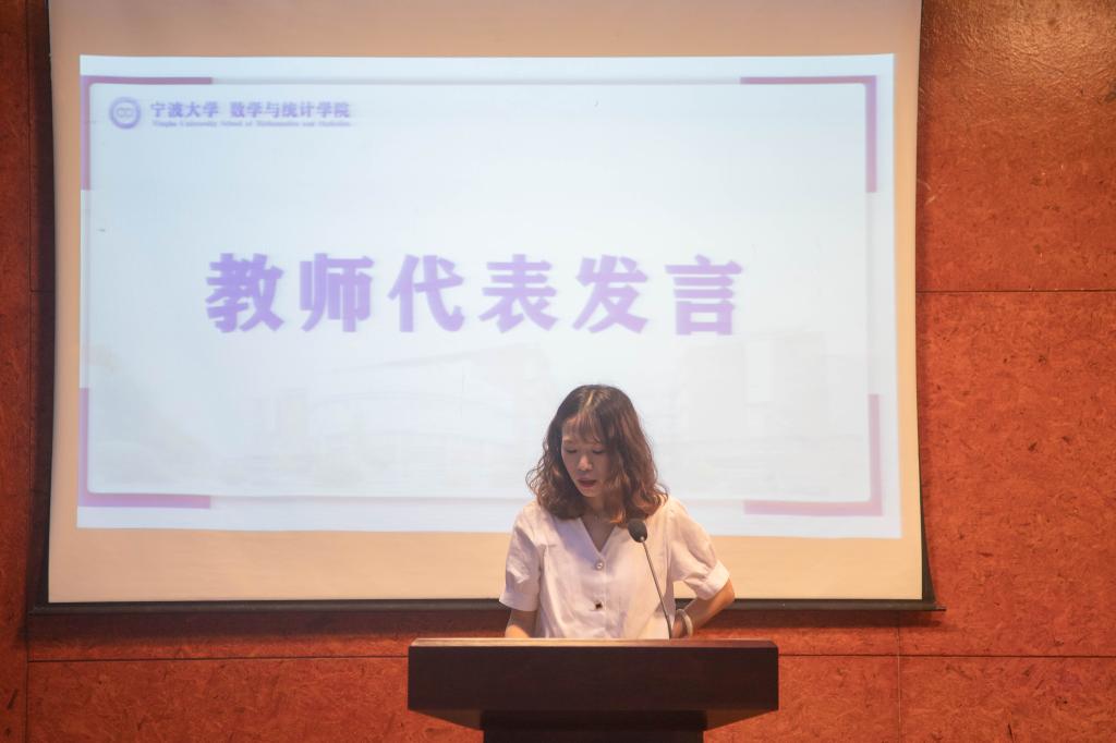 开学典礼在全场庄严的奏唱国歌中拉开了帷幕。首先,新生代表2021级中美精算专业陈依代表全体新生上台发言,她从初闻宁大、体验宁大、深入宁大三个角度,讲述了作为新生对宁大、对数院的感悟。接着,研究生新生代表董芳敏,表达了加入数院这一大家庭的喜悦,也以自己的经历告诉在场的每一位同学,来到一个新的环境仍要继续努力,方能取得成功。最后,老生代表施沄烨上台发言,她希望新生们步入新的学习阶段,不要焦虑,不要紧张,要相信自己,相信数院,为成为一名数学人而感到骄傲。