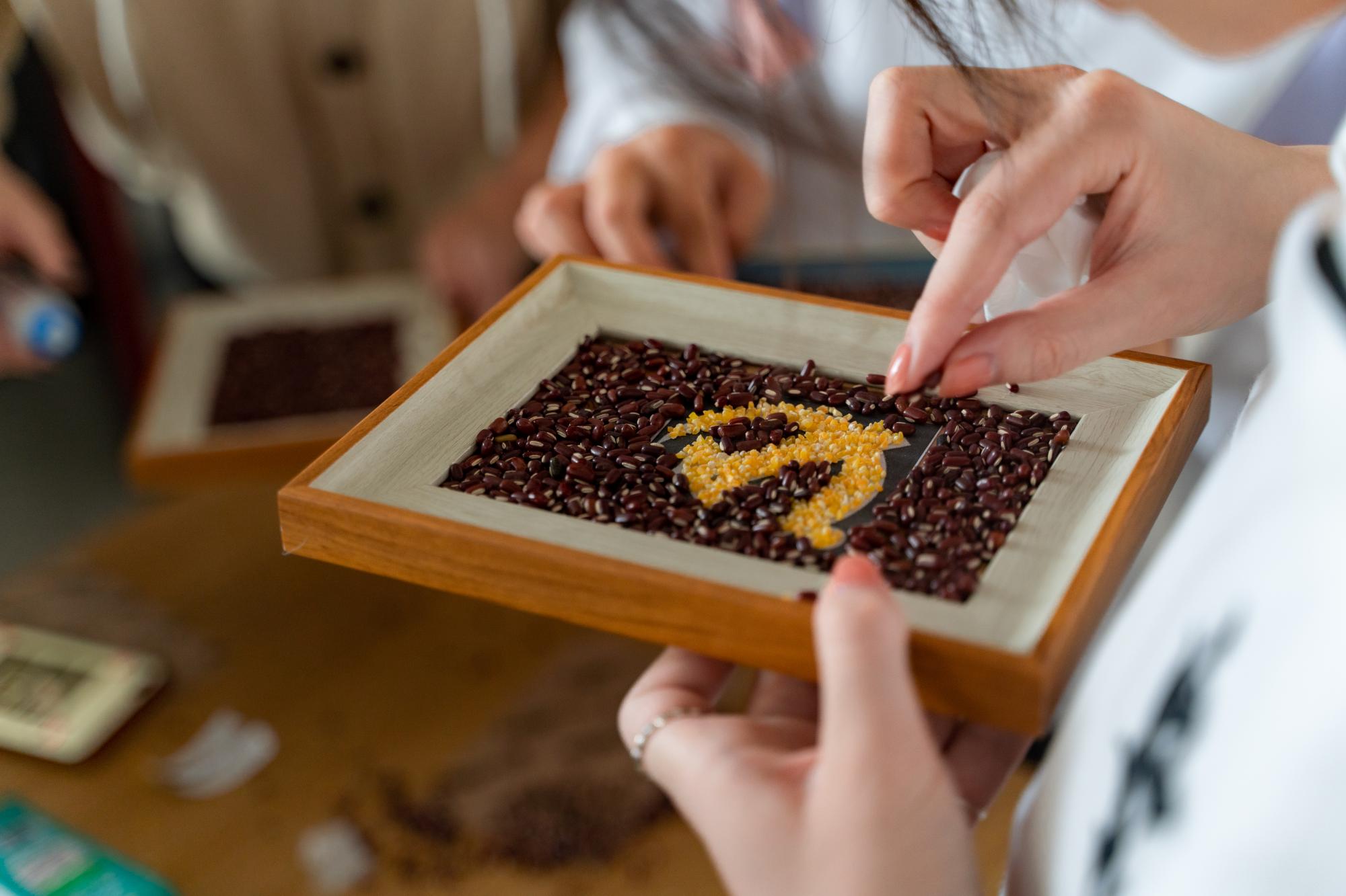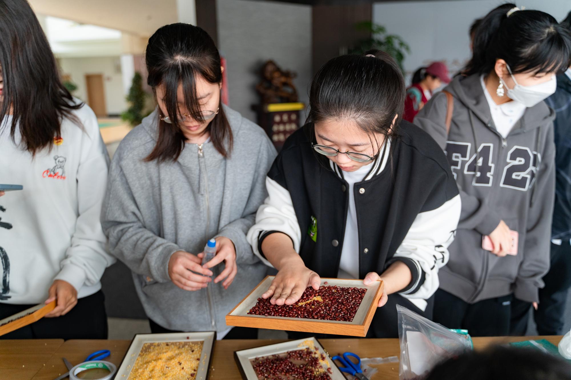 此外,学院还在现场组织了DIY党徽相框献礼二十大活动,以红豆和小米构成一枚枚党徽,用实际行动热烈庆祝党的二十大的胜利召开。在同学们的积极参与下,用小米做成的党徽,在红豆的映衬下更加熠熠生辉。同学们表示作为一名新时代新青年,要爱党、爱国、爱家、爱校,学好专业本领,奋勇争先,继续将建设社会主义现代化强国的薪火绵延传承。