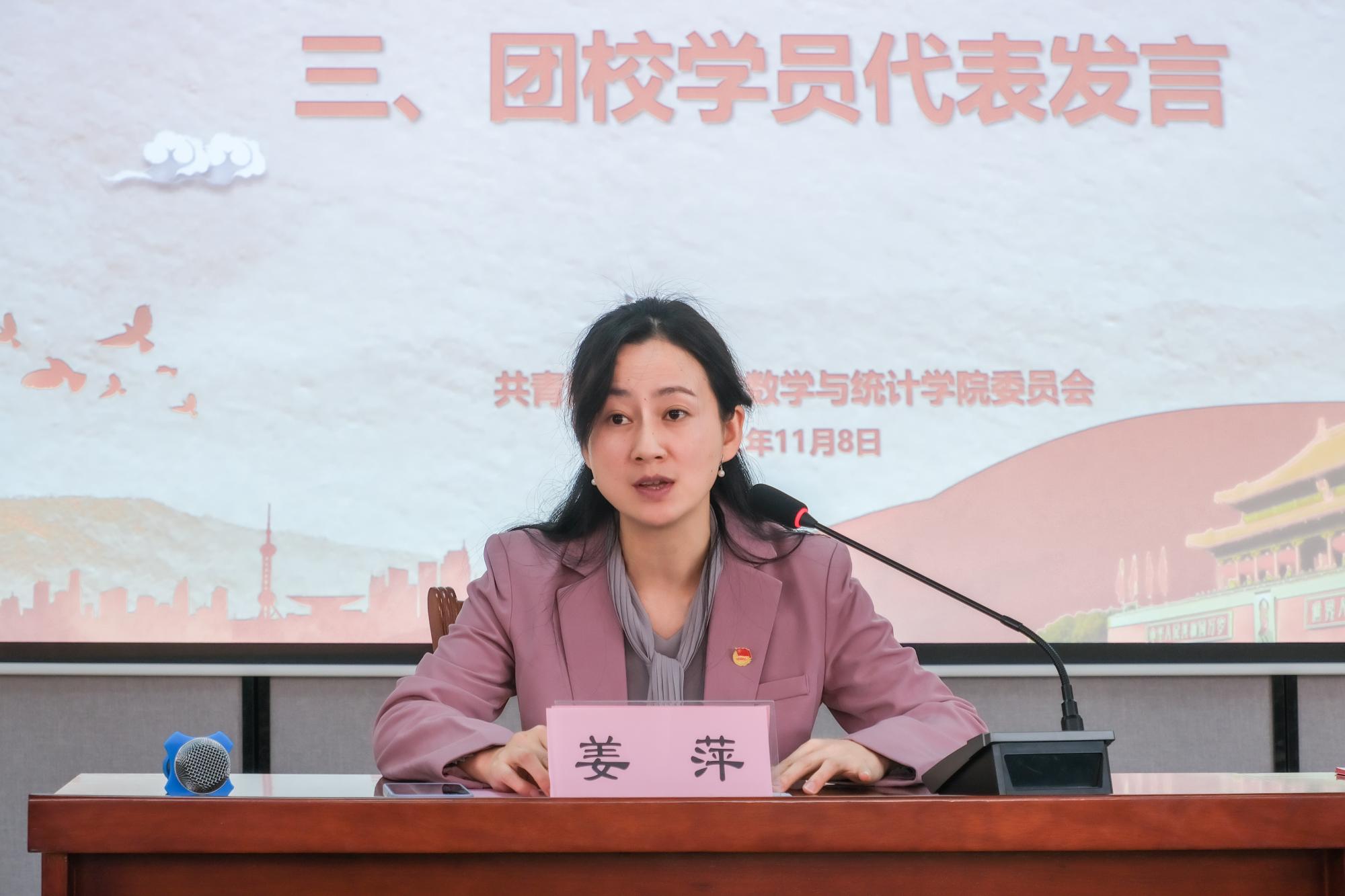 最后,党委副书记姜萍老师对团校学员们提出了三点期望一是希望同学们明确任务,提高政治站位;二是希望同学们知行合一,理论联系实际;三是希望同学们履职尽责,努力做好表率。强调,同学们要牢记习近平总书记在二十大报告中对当代中国青年的嘱托,围绕学校潜心立德树人、执着攻关创新的核心任务,在广阔的舞台上施展自己的才干,让青春在全面建设社会主义现代化国家的火热实践中绽放绚丽之花。