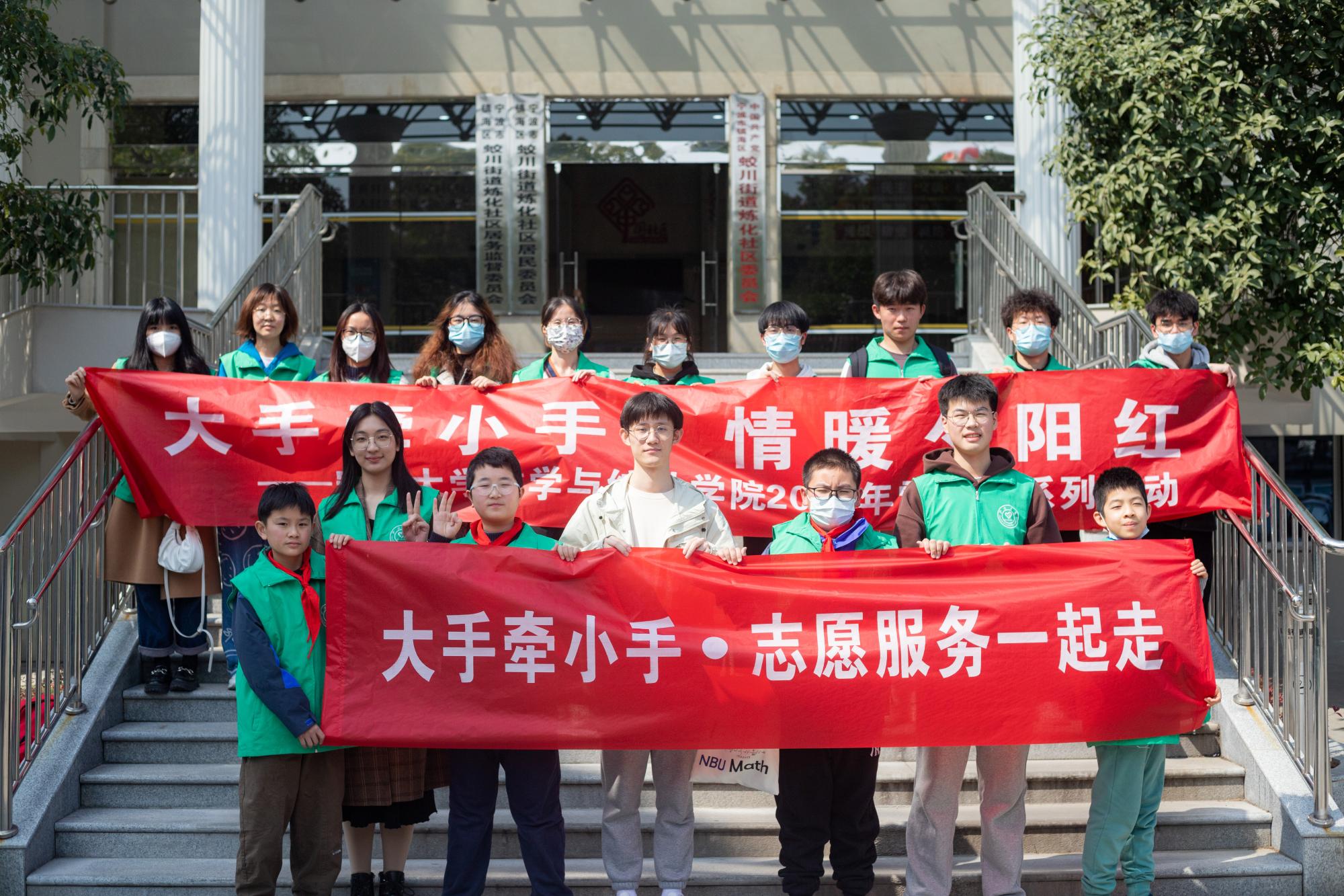 的志愿者们和宁波市镇安小学的小朋友们共同来到位于镇海区的小柏长者照护之家,开展雷锋月“智慧助老”志愿服务活动。