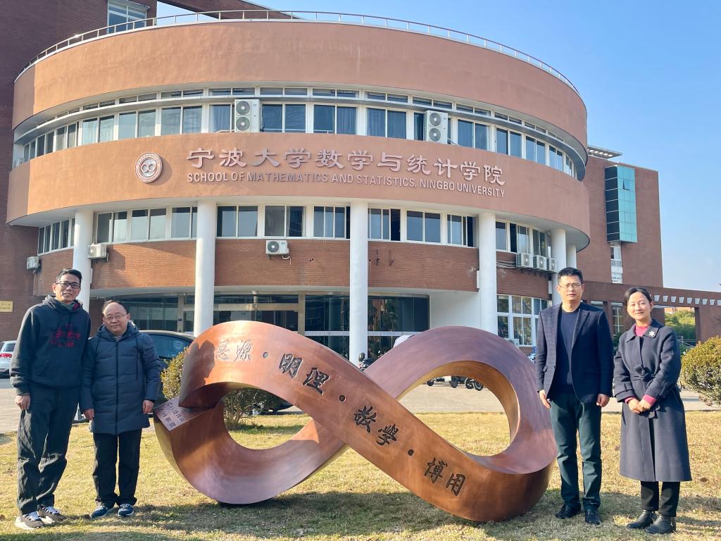 (数学学院领导、严正与“∞雕塑”合影)