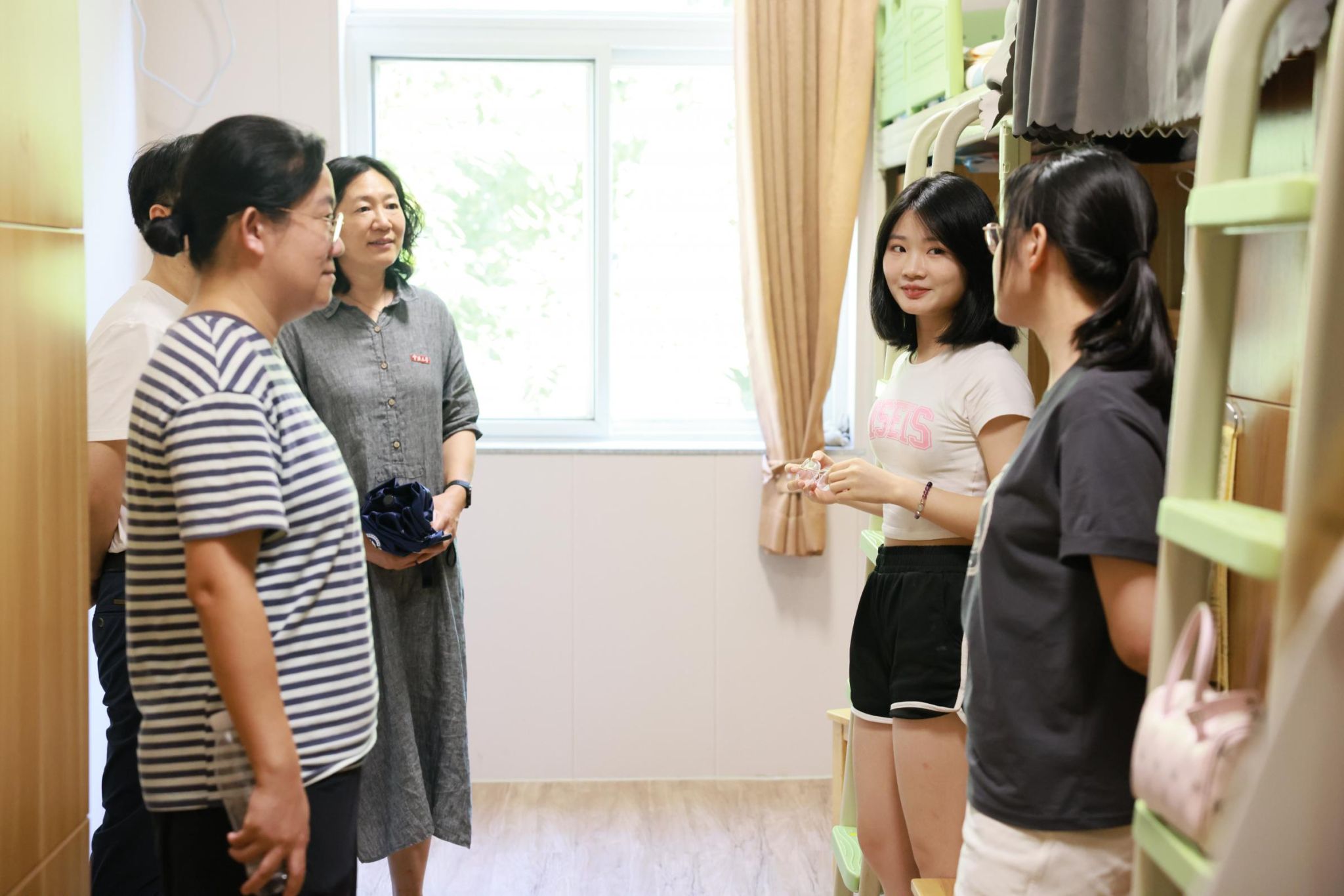 走访过程中,学院领导老师们认真查看了新生宿舍的各项设施设备,与同学们展开了亲切友好的交流。他们详细询问新生们来自何处、初入校园的感受以及对新环境的适应程度,提醒同学们注意寝室用电安全,注意个人财物的保管,团结宿舍同学,共同营造温馨、温暖的宿舍环境。同时,老师们为新生和家长介绍了我院的基本情况与特色优势以及人才培养目标,鼓励同学们尽快适应角色,做好各项规划安排,在培养方案的指导下,推动学习生活进入正轨。在交流的过程中,老师们围绕学习生活等各方面的问题进行了细致地解答,并叮嘱大家注意身心健康,平衡好生活和学习。