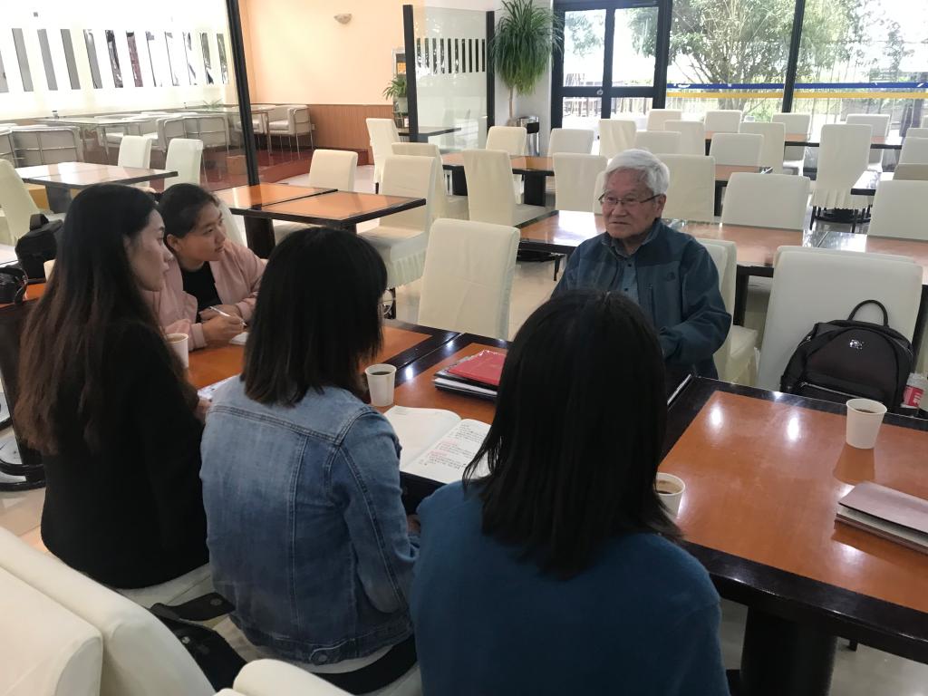 首届数学系主任85岁的欧阳光中老先生在复旦大学热情地招待了来访师生,双方进行了亲切座谈。到访师生向欧阳先生汇报数学获批一级博士点、数学学科评估排名的可喜成绩;接着,欧阳光中与来访师生通过翻阅援建宁大老照片的方式共话当年的援建故事,寄语宁大青年学子要奉献、实干、创新,要在社会主义的共性制约下追求个性。