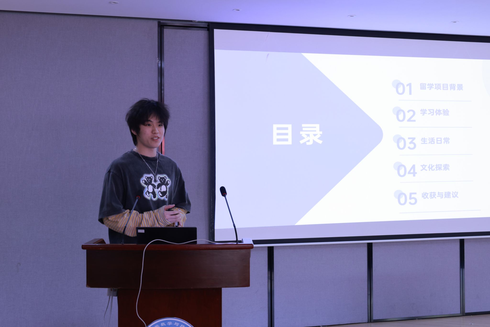 接着,创新班周凯迪同学与金工班徐茁涵同学分享经验。他们两位作为项目曾经的参与者,用生动语言及丰富多媒体资料,讲述了自己在加拿大的学习体验,为在座的同学们提供了宝贵的参考和借鉴,使其对项目挑战与机遇有更清晰认识。