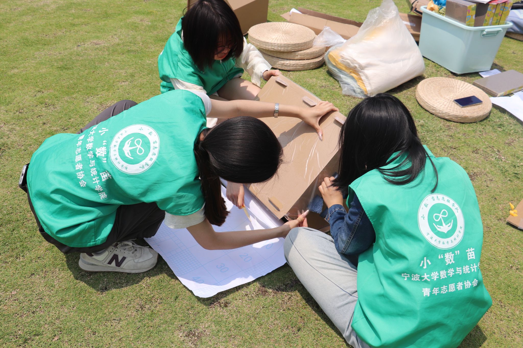 组建的青年志愿者团队。团队践行“精微致远”的服务理念,厚植深耕 “助学扶幼、敬老助残、社会共建、校园服务”四大核心板块,推动志愿服务与学科优势深度协同。5月12日,宁大小“数”苗志愿服务队联合宁大爱猫协会,推出创新型公益志愿服务项目——“巧手筑暖居,旧材焕新意”猫窝制作活动,通过资源再利用与劳动教育相结合的方式,在学校东校区大草坪构筑起10座创意猫屋,为流浪猫群搭建起温暖防护网。