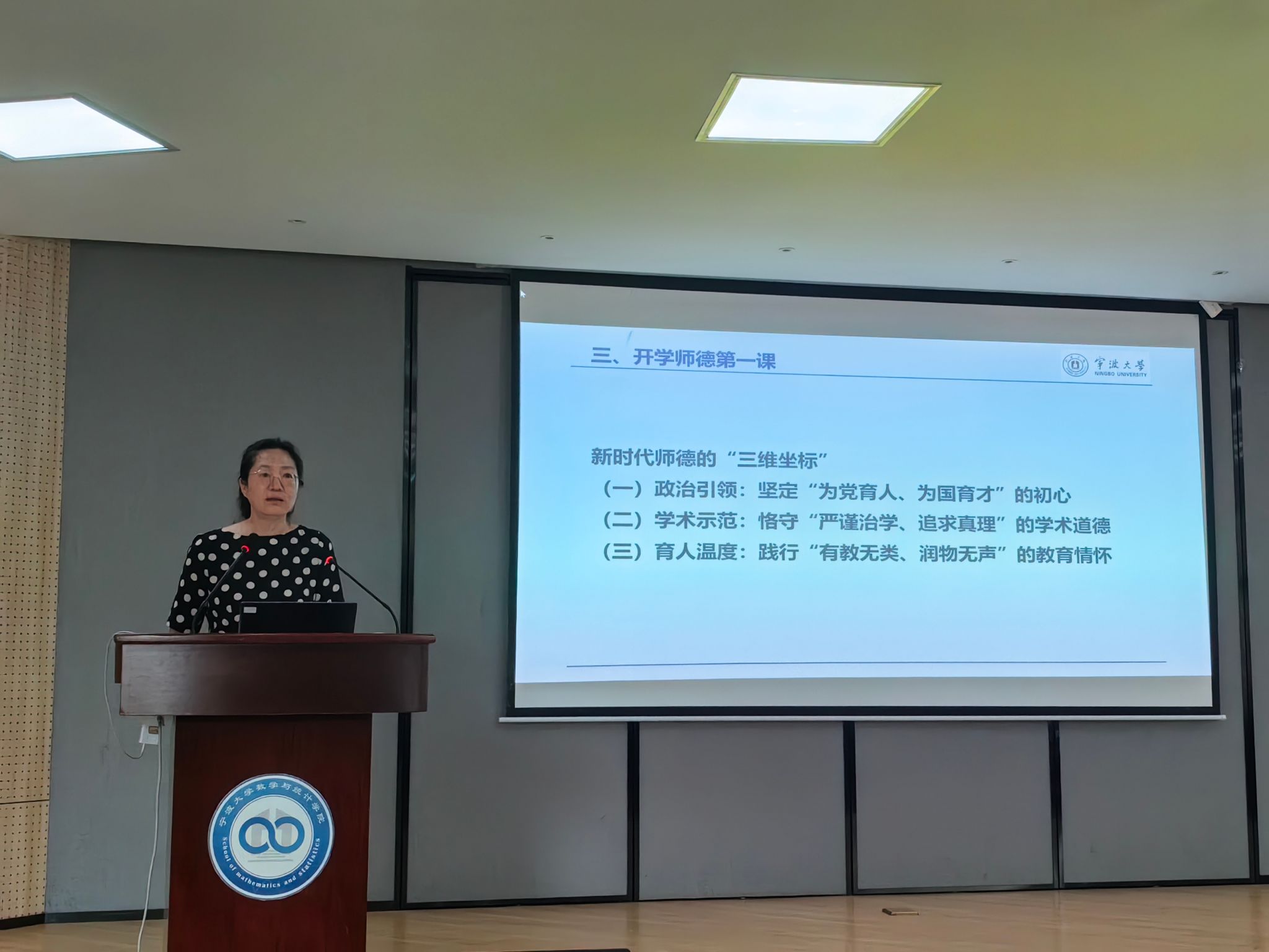 2025年暑期中层领导干部扩大学习会会议精神。在传达蔡荣根校长的讲话精神时,她希望大家深刻认识建设高质量本科教育的重大意义,统一思想、提高认识。学院要进一步落实蔡校长的讲话精神,聚力改革,扎实推进学院高质量本科教育教学体系建设。她呼吁全体教师要积极参与本科教学的改革与实践,不断推进学院本科教学质量、提高人才培养质量。在解读李伟平副校长《关于新形势下本科人才培养的工作思考》的专题报告时,她聚焦报告中总结的十大问题,要求老师们也要结合实际工作自查自省,是否存在类似问题并查找问题根源。她指出,这些问题关乎师德师风,影响教风学风。接着她进一步强调了师德师风建设的重要性,要求全体教师在实践中要坚定“为党育人、为国育才”的初心,恪守“严谨治学、追求真理”的学术道德,践行“有教无类、润物无声”的教育情怀,做一名合格的人民教师。最后,霍妍从意识形态领域、安全生产领域、交通安全领域、极端事件防范领域、自然灾害应对领域等多方面对校园安全稳定工作进行了强调。