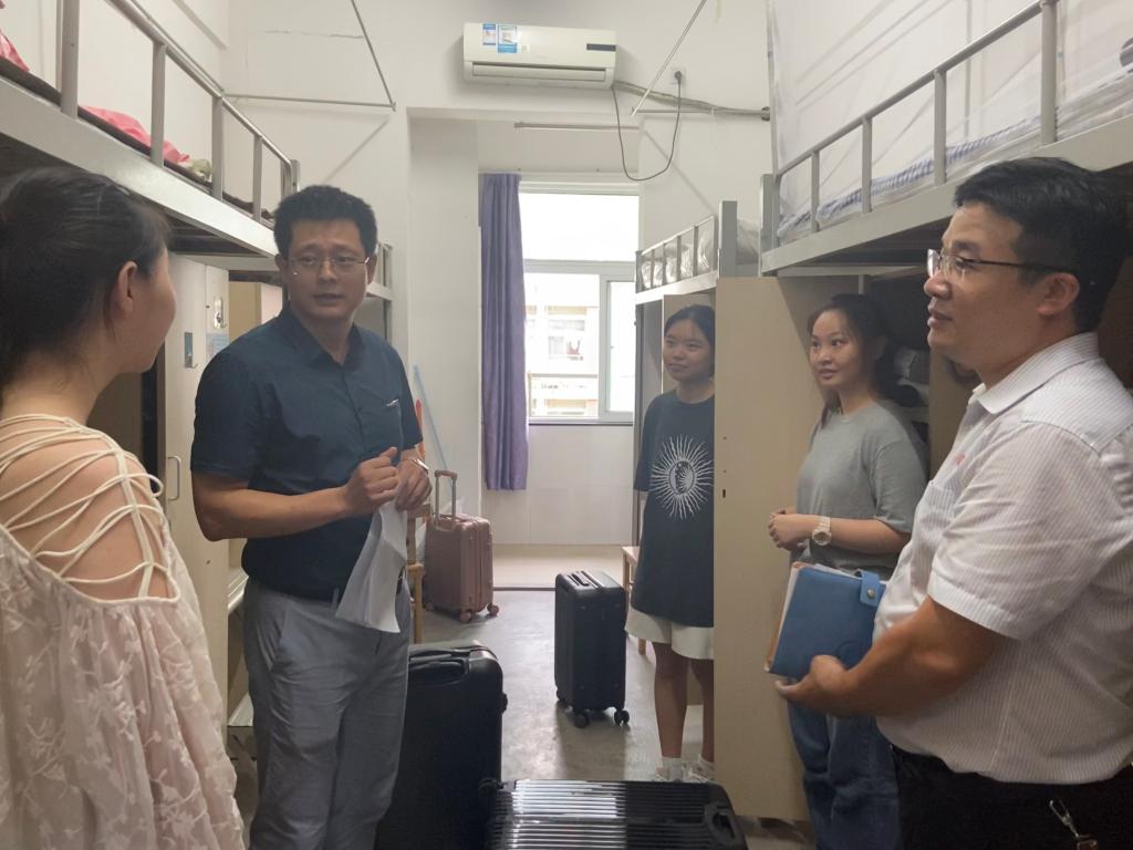党委书记俞金波、副院长胡良根、院长助理包晓明和精算中心成员分别前往甬江公寓3号楼和5号楼走访新生宿舍,了解新生的入住情况,并给予他们温暖的关怀和真切的鼓励。在走访新生宿舍过程中,学院领导和老师悉心查看了新生的住宿环境,仔细询问了新生们的家乡等方方面面的情况。在关注其入住情况的同时,还热情地与同学们交谈,指导新生们的学习生活日常,耐心解答同学们入学后的各方面问题。同时,学院领导和老师十分关注新生的心理情况,在沟通交流的过程中,帮助大家打消初入大学这个陌生环境、家长不能入校而产生的顾虑。此次走访,拉进了师生之间的距离,同时也让新生们感受到了来自学院的关爱和温暖,有利于他们早日适应大学环境,以最好的状态迎接新的生活。