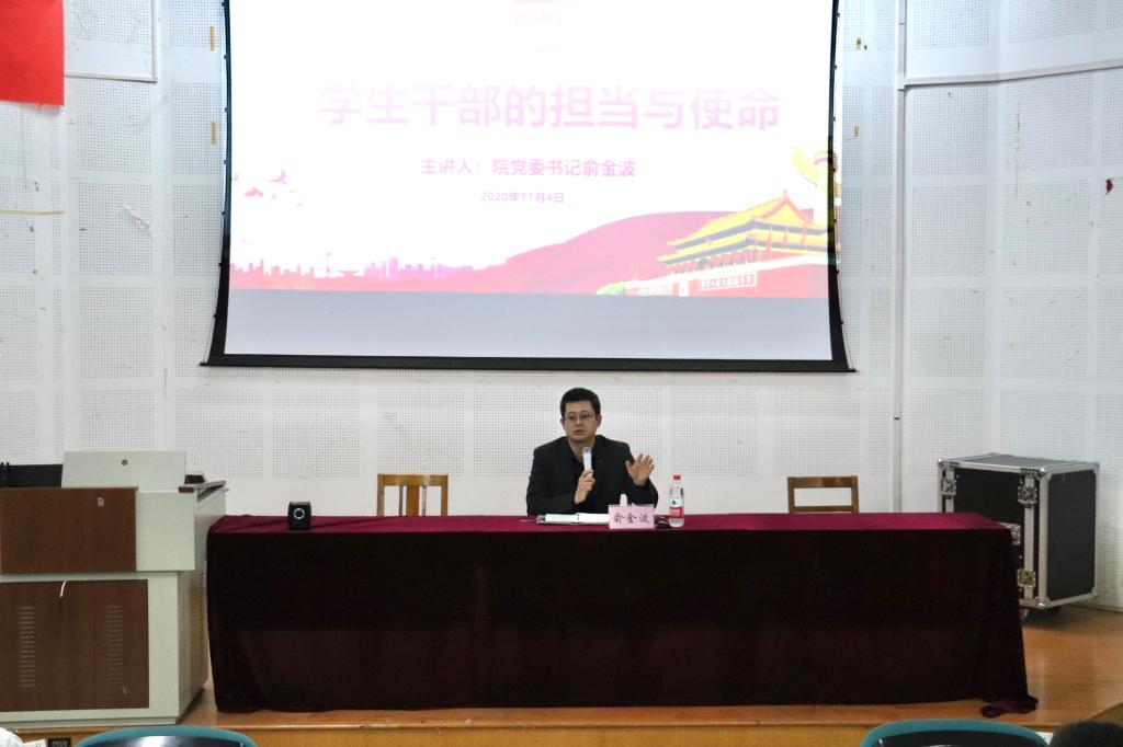 党委书记俞金波老师,院长助理包晓明老师,团委副书记陈佳雯老师,学院全体优秀学生干部与青年团员出席本次开班仪式,由陈佳雯老师主持。