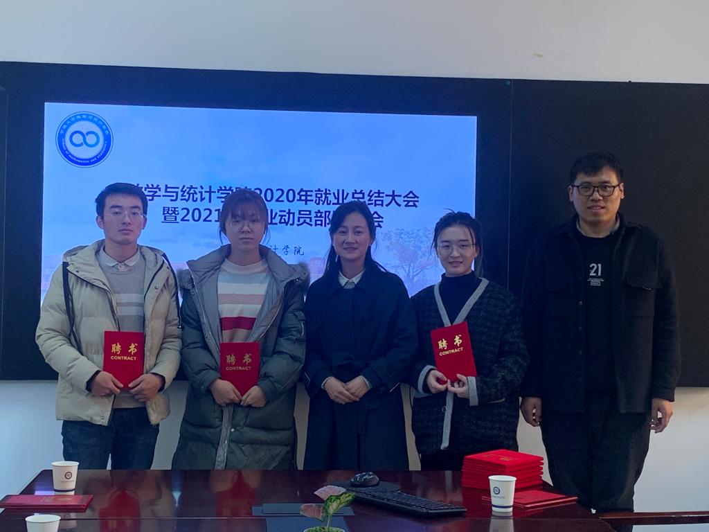 此项成绩取得的背后离不开全院师生的共同努力和辛苦付出。随后,在场领导老师还对年度就业服务优秀人员进行了表彰;还为2021届院就业指导中心人员颁发了聘书。