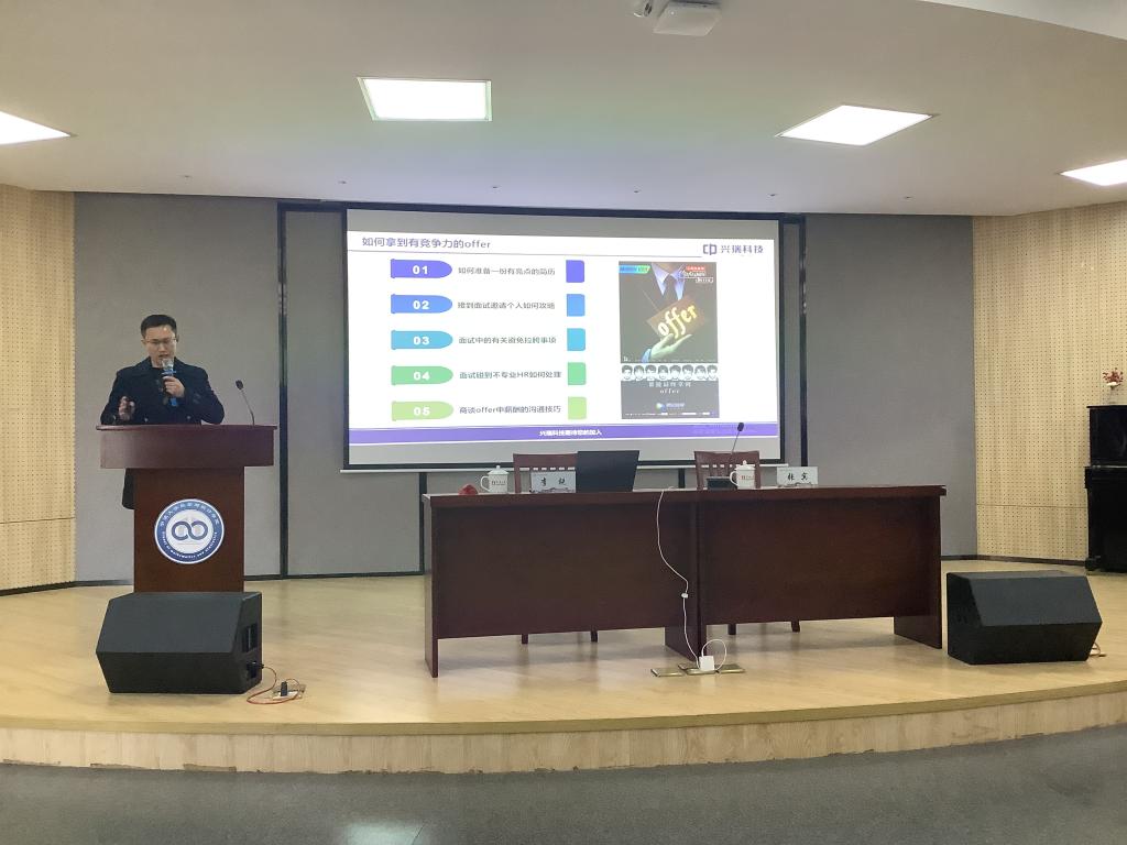 3月9日下午,学院在113报告厅举办以简历制作指导为内容的毕业生求职辅导分享活动。本次活动邀请资深HR,兴瑞科技人力资源总监李锐,为同学们作主题为“如何设计一份好的简历”的专题讲座。讲座由学院学工办主任张宾主持,毕业班及部分低年级同学共同参与。