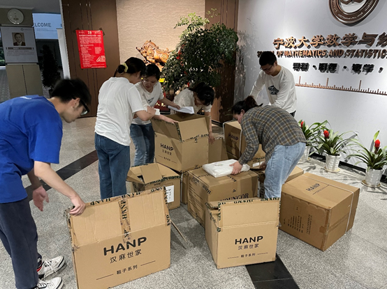 所在的包玉书九号楼行驶,卸下了来自雅戈尔集体对我院的专属捐赠物资,其中包括鞋子、T恤、内衣、袜子、卫浴用品等日常生活必需品,合计157箱、2620件。这些物资满载着雅戈尔集团的企业大爱,为正在努力抗疫的宁大校园注入了一股暖流。