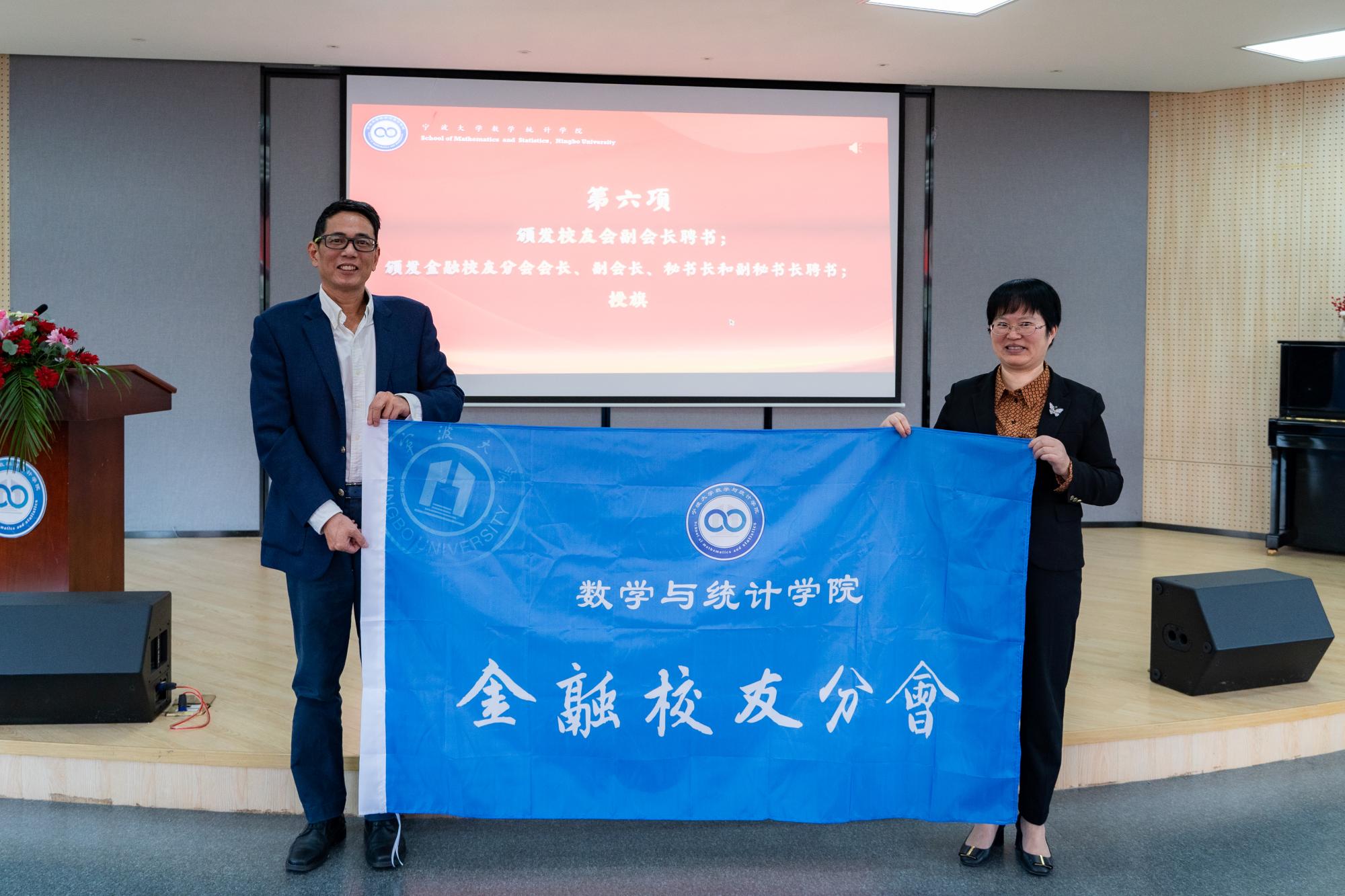 (学院校友会会长严正为金融校友分会授予会旗)