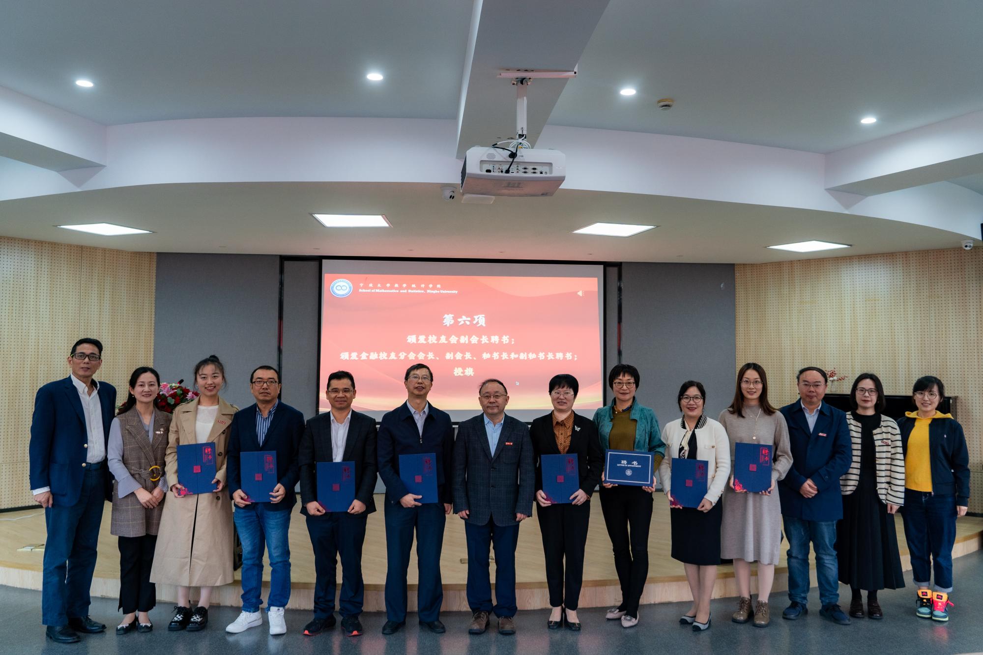 (学院校友会会长严正为金融校友分会组织机构成员颁发聘书)