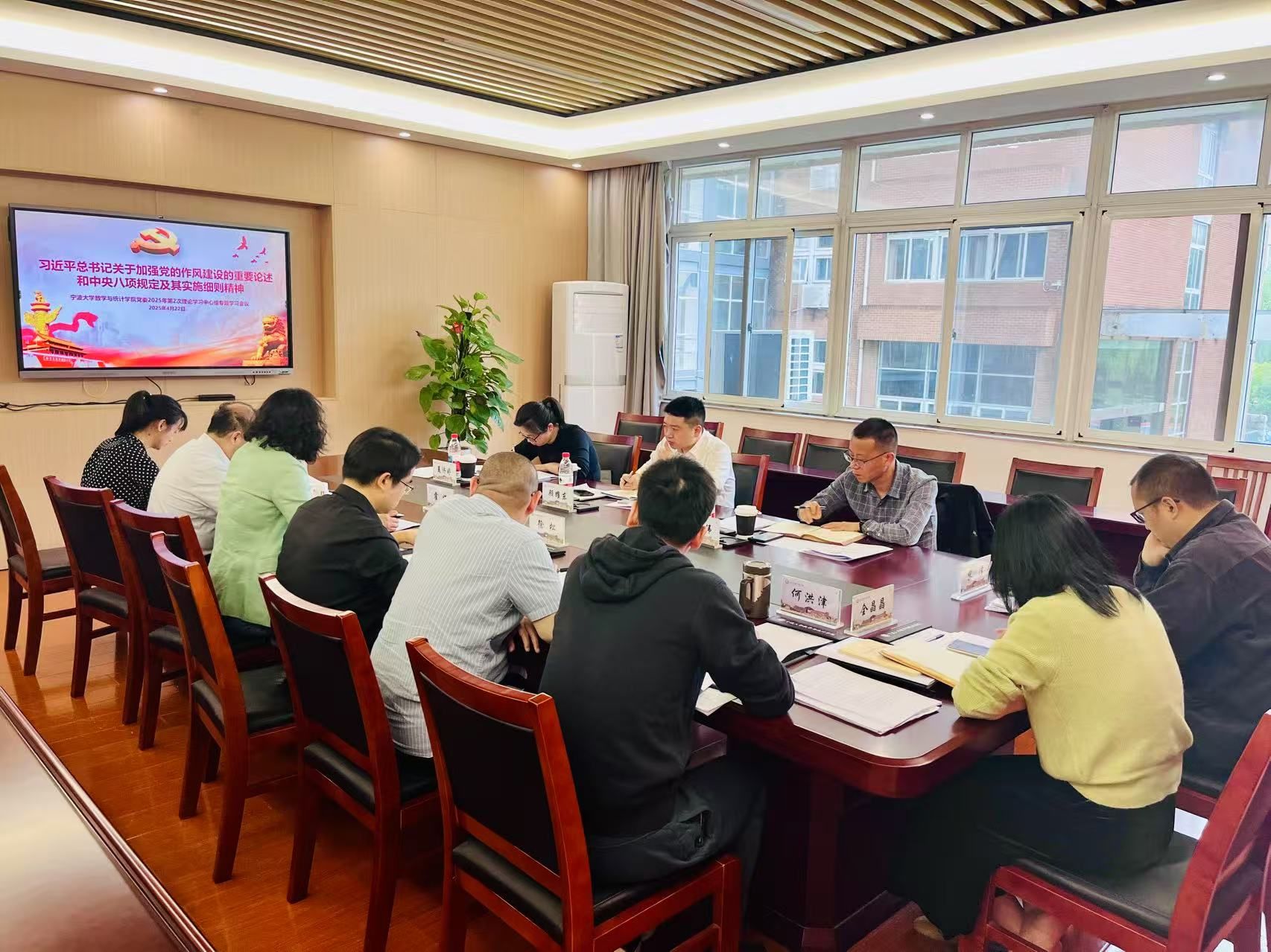4月22日上午,黑料718 党委理论学习中心组举行2025年第2次集中学习会,就习近平总书记关于加强党的作风建设的重要论述和中央八项规定及其实施细则精神进行专题学习。院党委书记主持会议,校党委委员、组织部部长顾耀东一行代表校党委巡听旁听,学院党政领导班子全体成员参加会议。