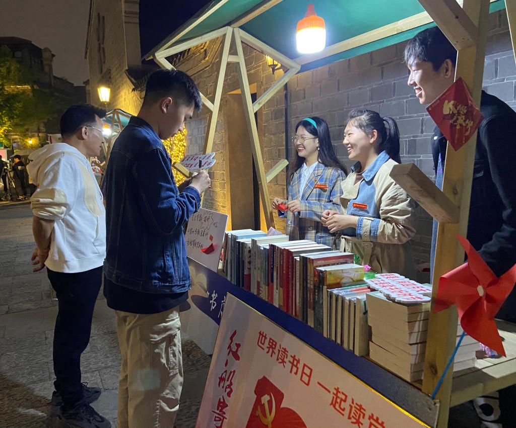 本次活动以第二十六个世界读书日为契机,联合宁波甬上枫林晚书店,通过党史类、国内外经典名著类图书义卖的形式,融合“向党说说心里话”、“读红色书籍,忆入党初心”、“党史竞答”等主题的红船寄语活动,吸引广大市民朋友共同参与到本次活动中。同时,通过此次活动也让学生党员走出校园,深入群众,在为市民推荐读物,交流读书心得的过程中,真正做到为群众做实事,为百姓谋新篇。