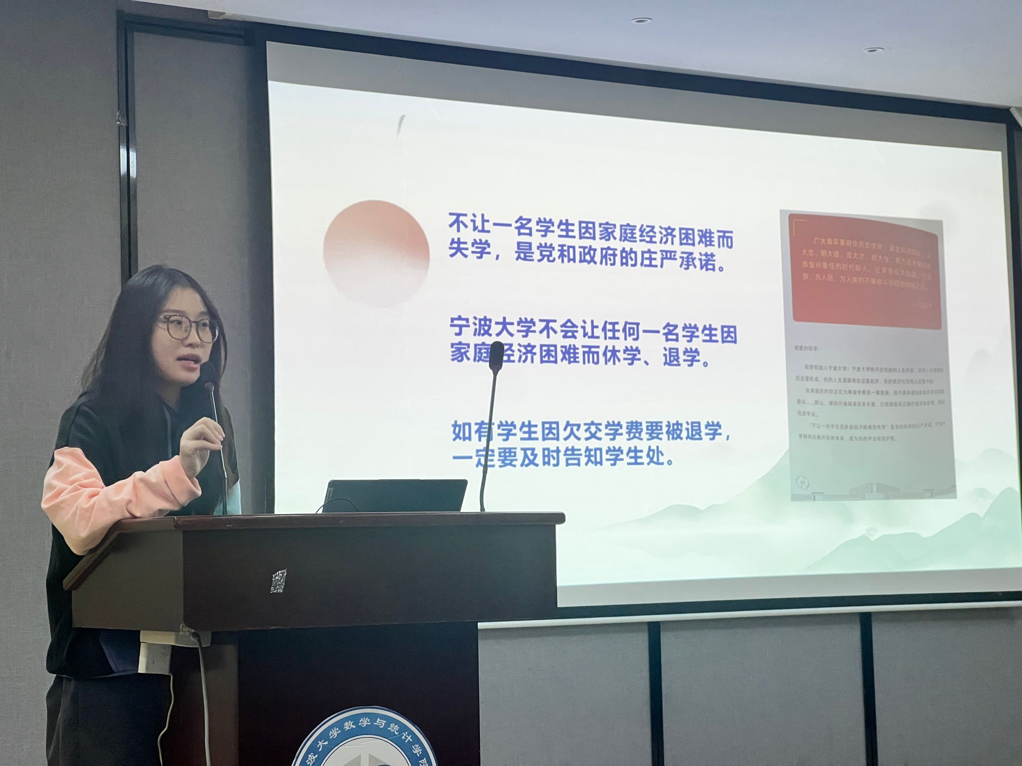 数学学院资助政策宣讲会在113报告厅举行。本次宣讲会全面覆盖学院全体学生,旨在精准传达学校资助政策体系,切实解决学子求学路上的经济顾虑,助力每一位学生安心求学、逐梦前行。